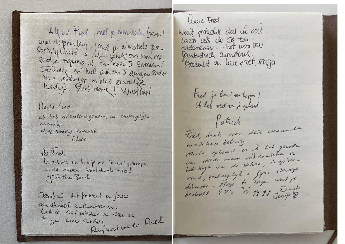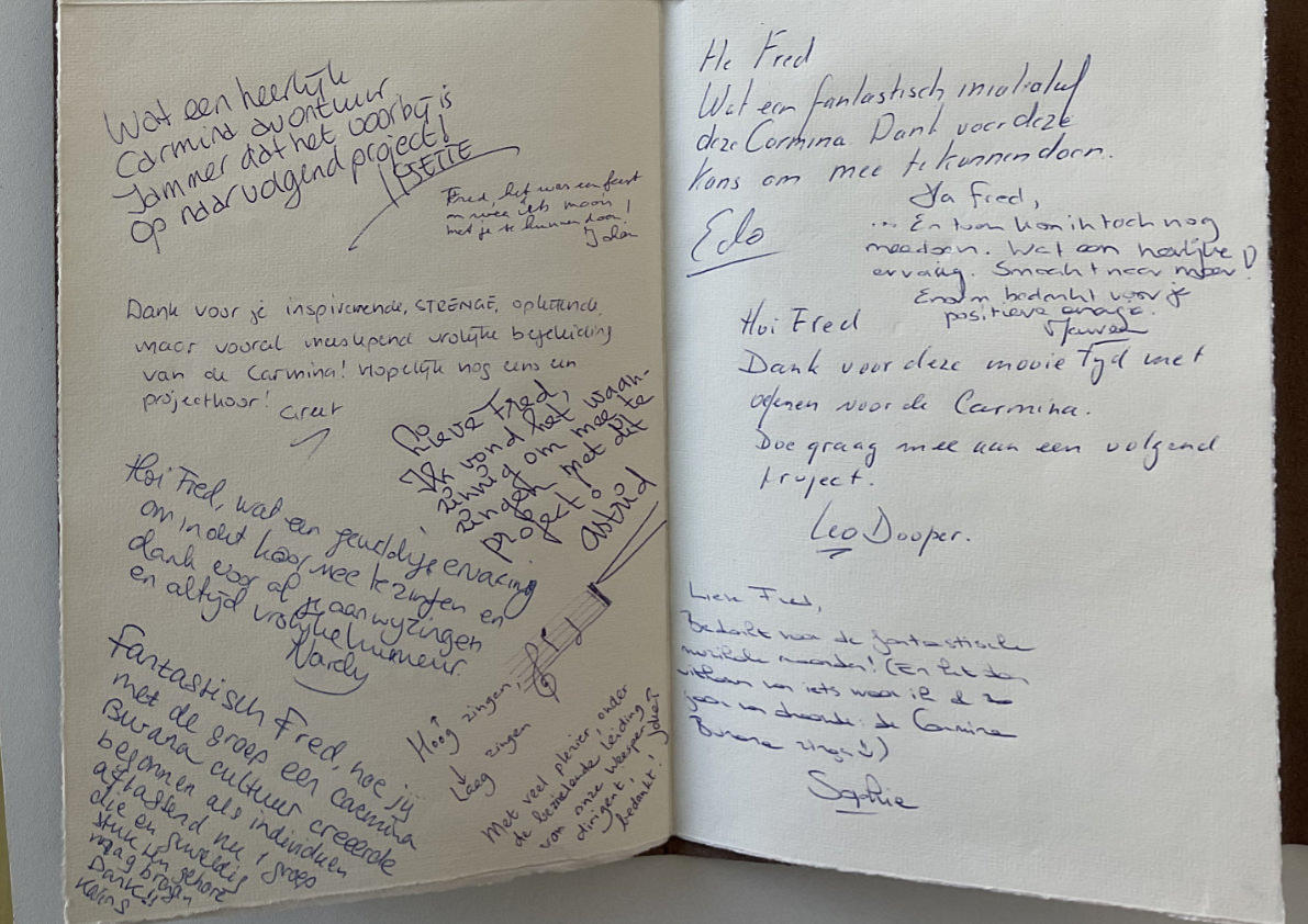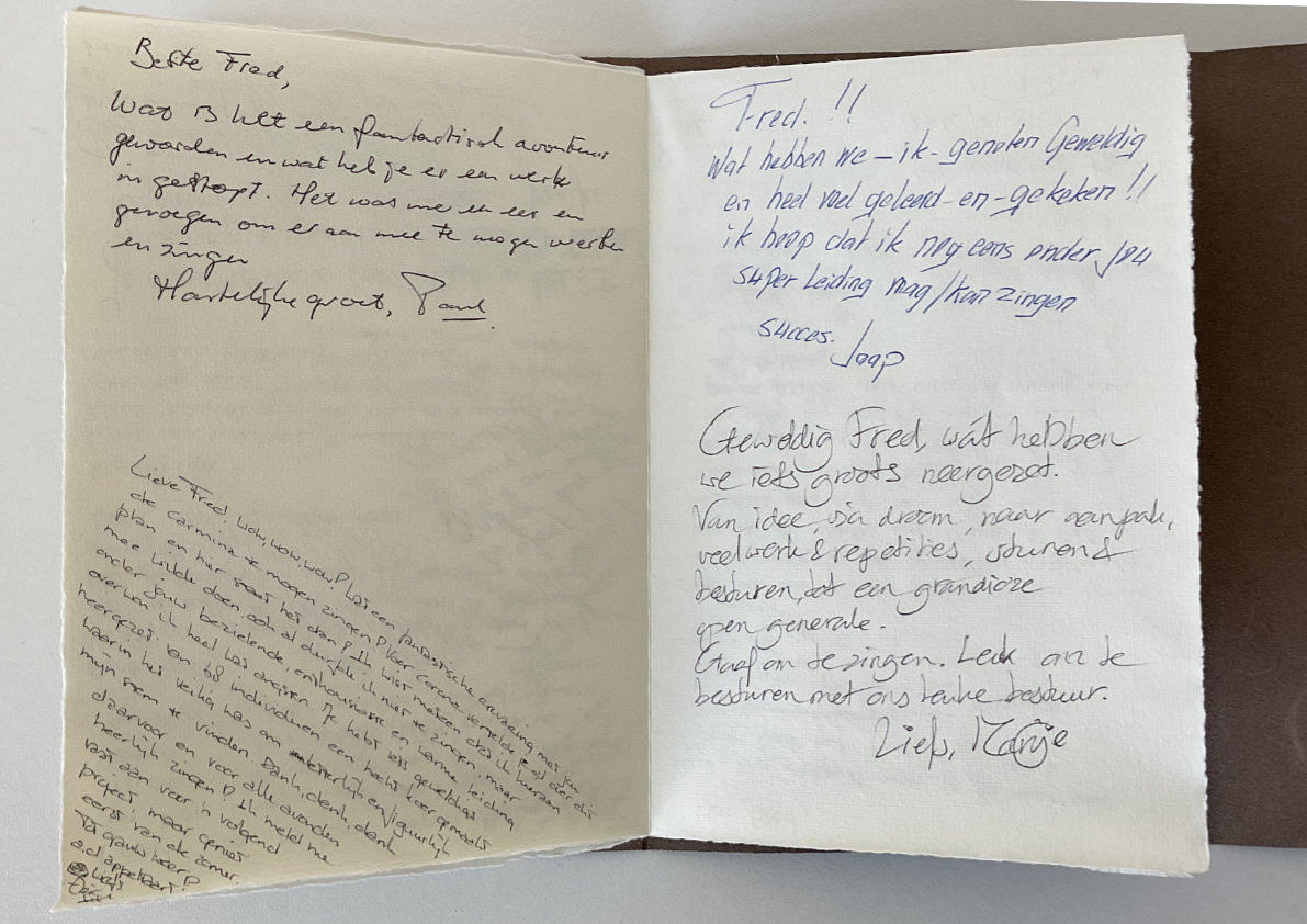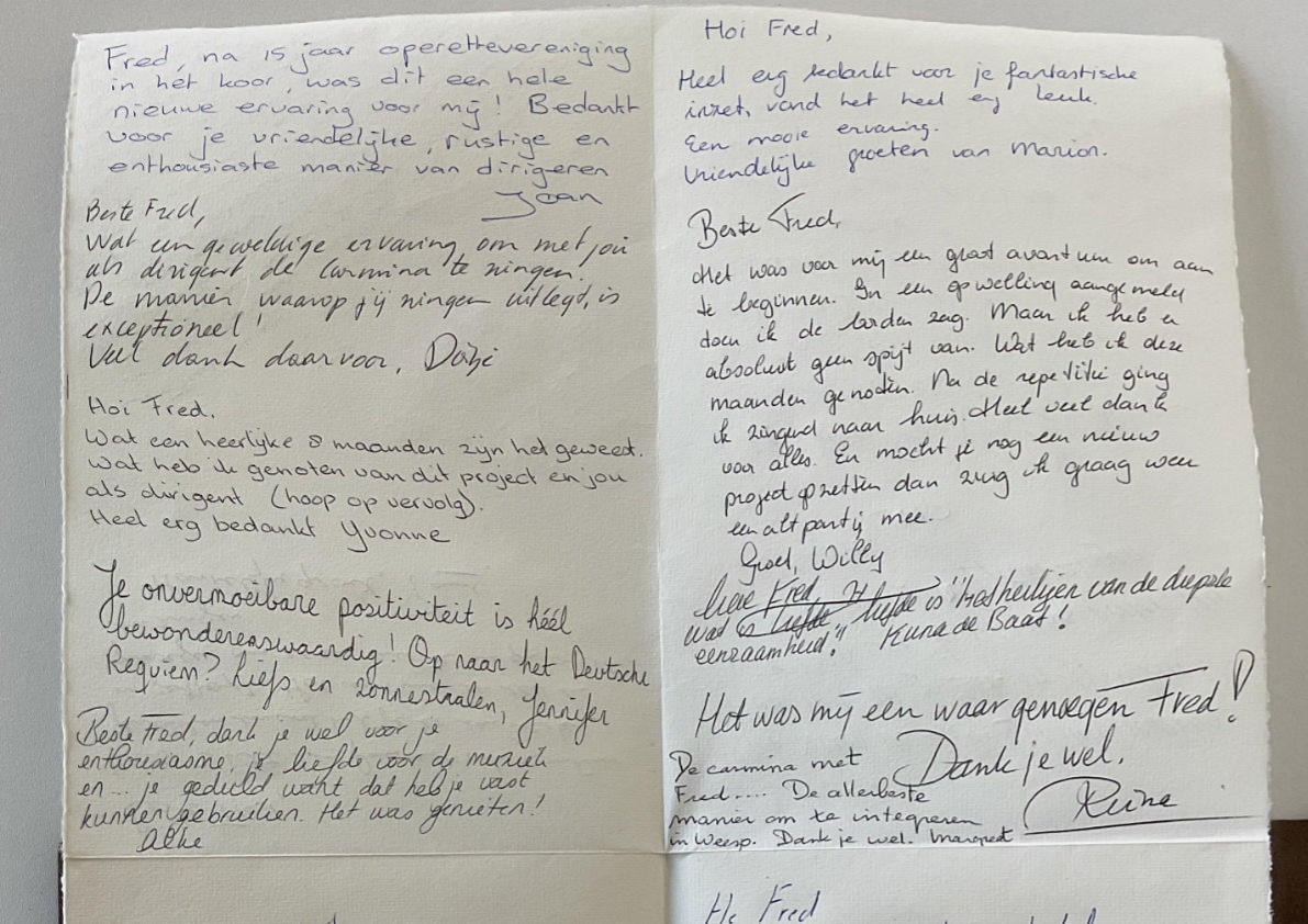 Een afscheidscadeau voor dirigent Fred Smalbrugge namens het hele koor.